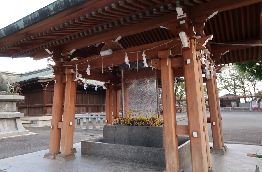 本殿が見えてきた、その前に手水鉢 |