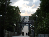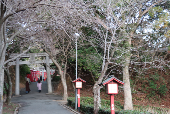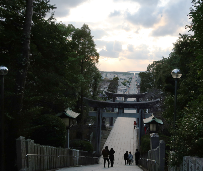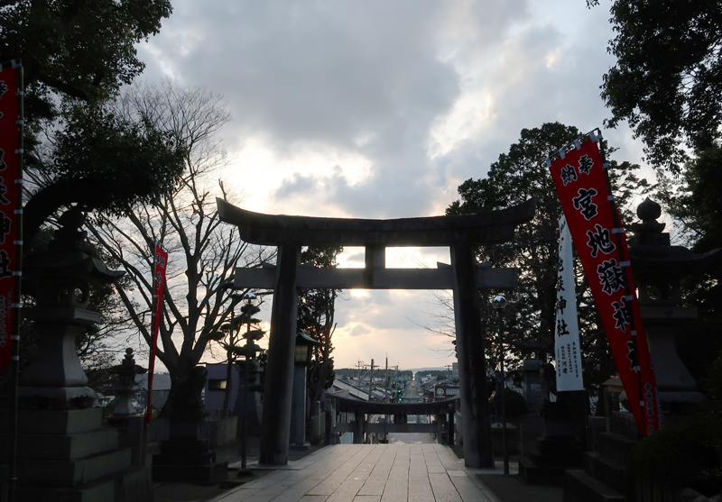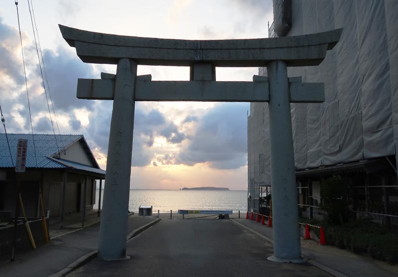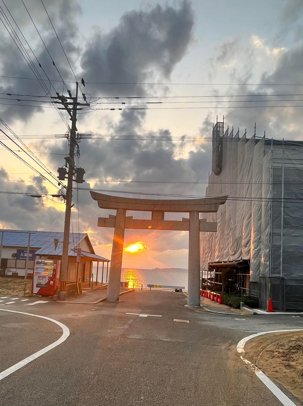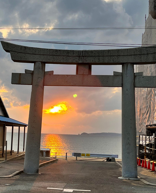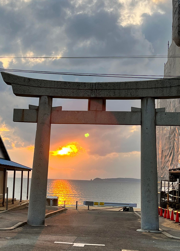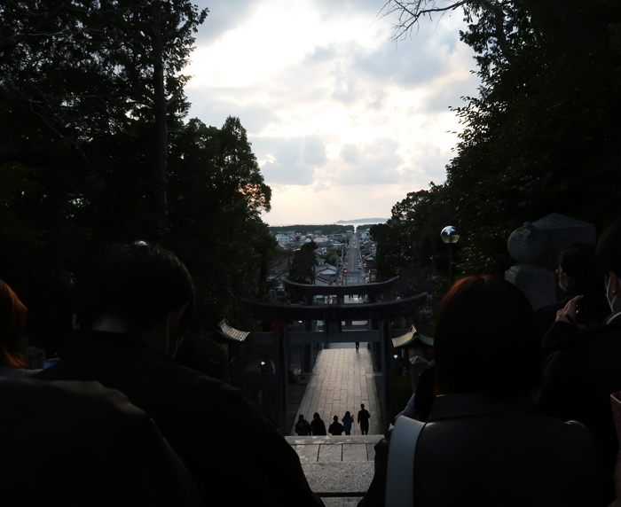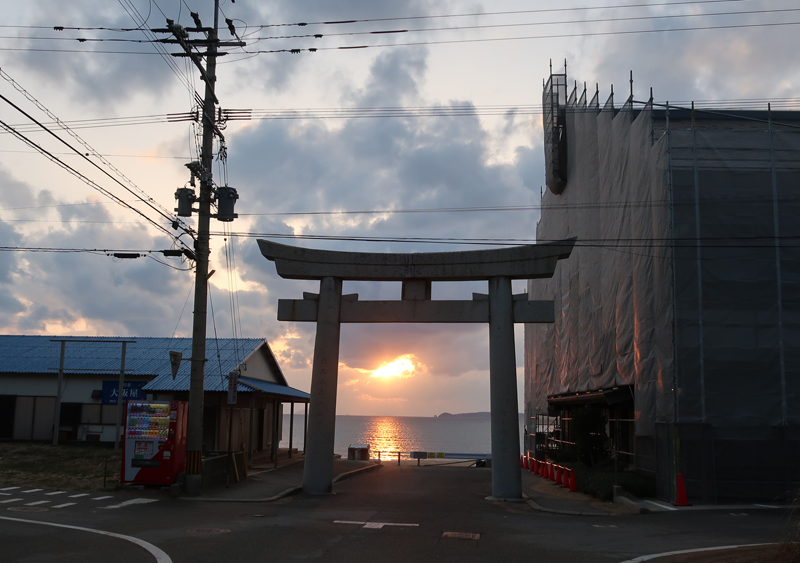 | 毎年2/20と10/20の是後2週間に、神社と参道が一直線になった先に夕日が沈む。 |