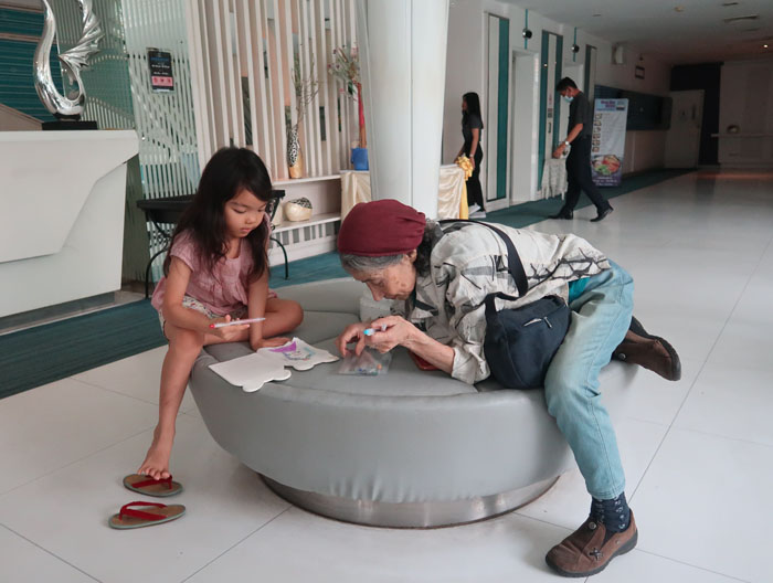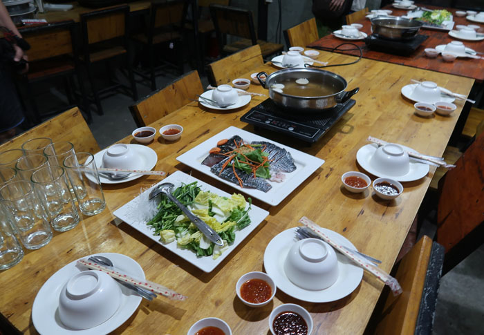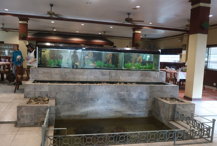 ホテルに戻る。フロント、微妙なフロントの家具類。チェックイン、しばし休憩し、その後バスで夕食へ。