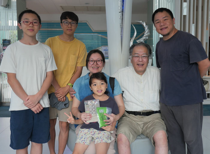 谷口御夫婦、ルカくん(14歳)、然くん(ぜん12歳)、香梅ちゃん(こうめ、通称うめ6歳)