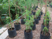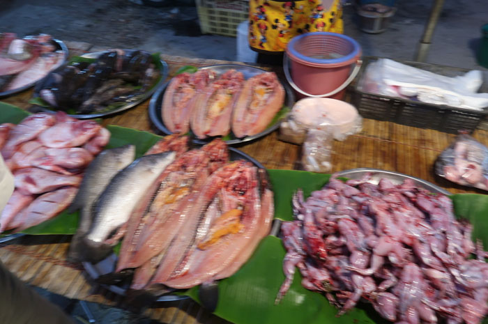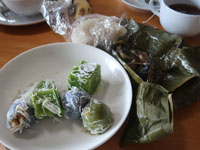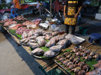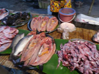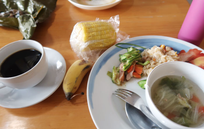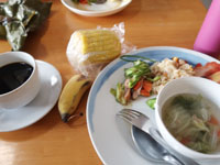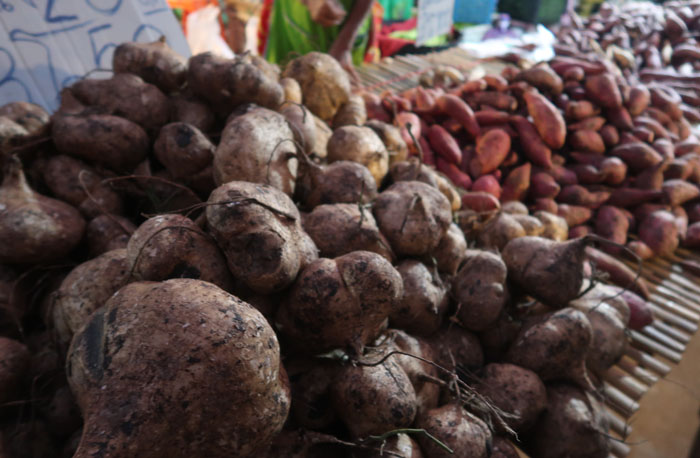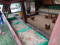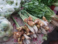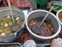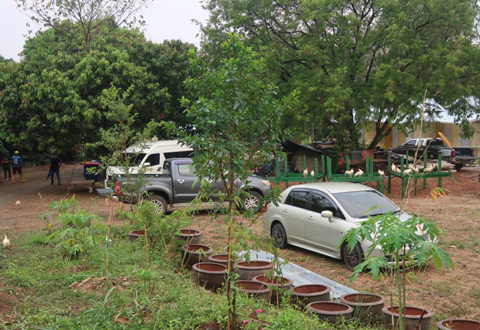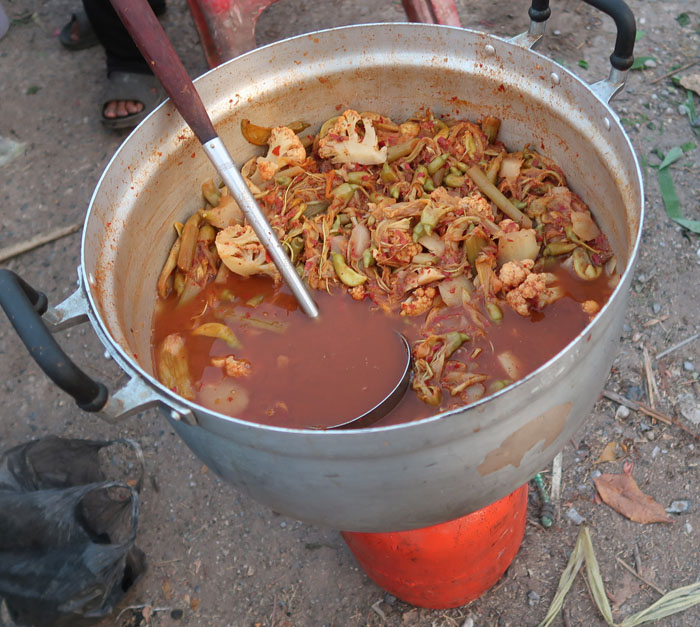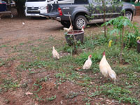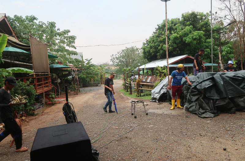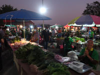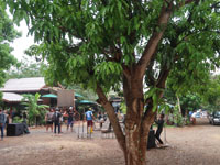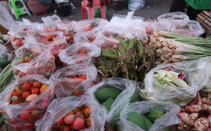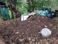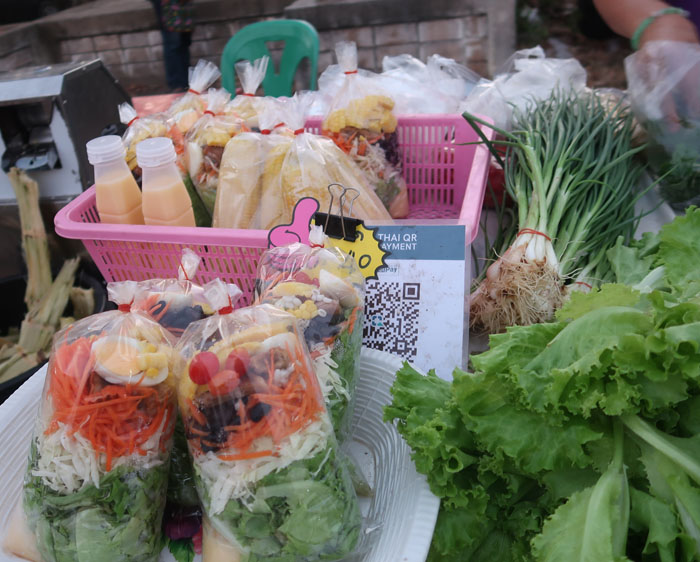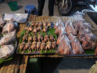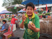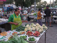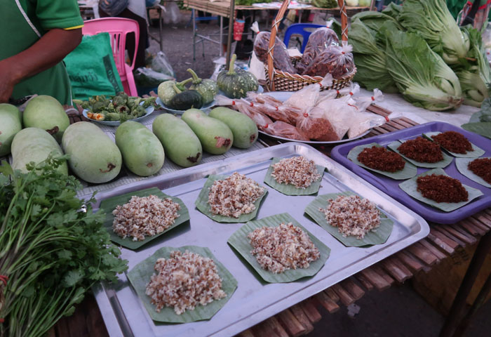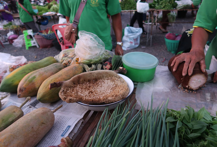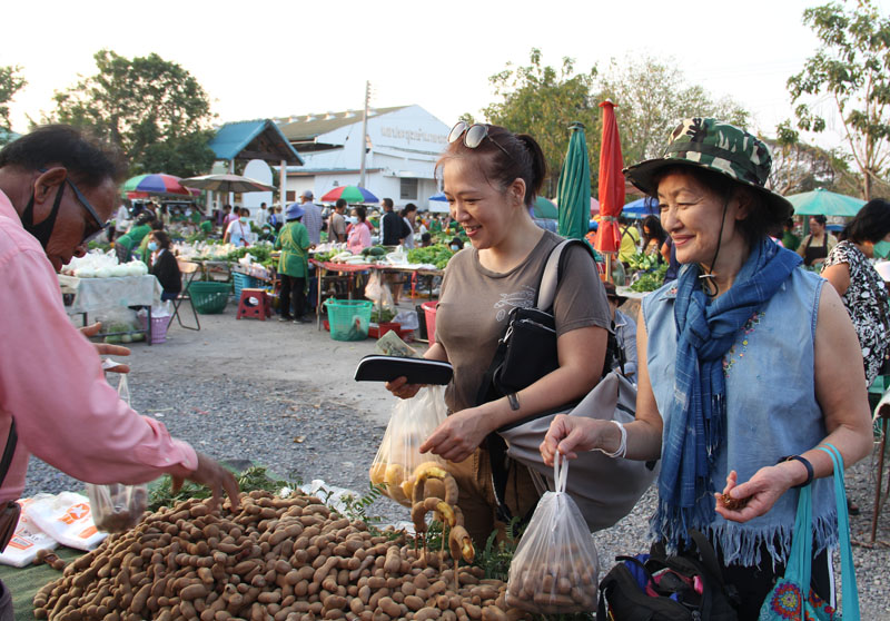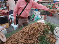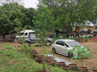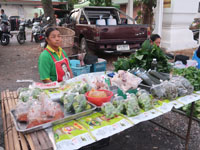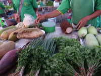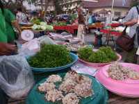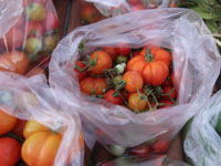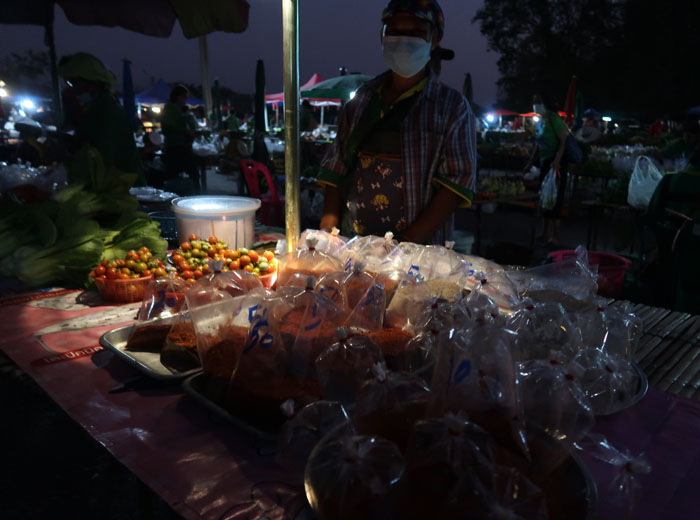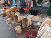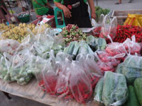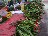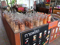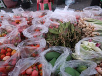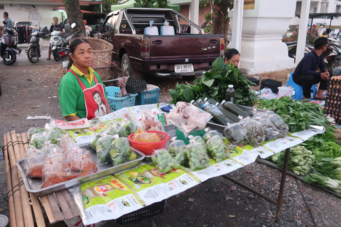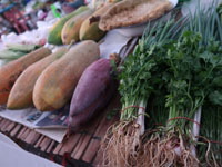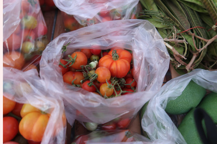 おすそわけの精神 雨は降らないので予定通り毎回開いている。各店の傘は寄付から。カエル、自然のもの獲ってOK。