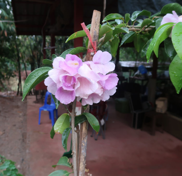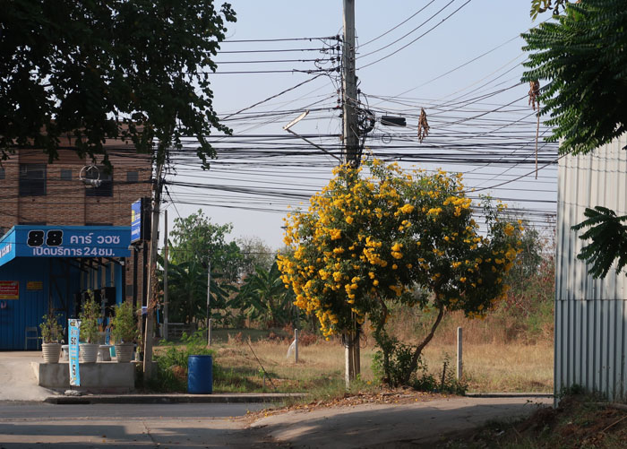 ホテル入口の黄色い花、これを見逃し迷子になってしまった