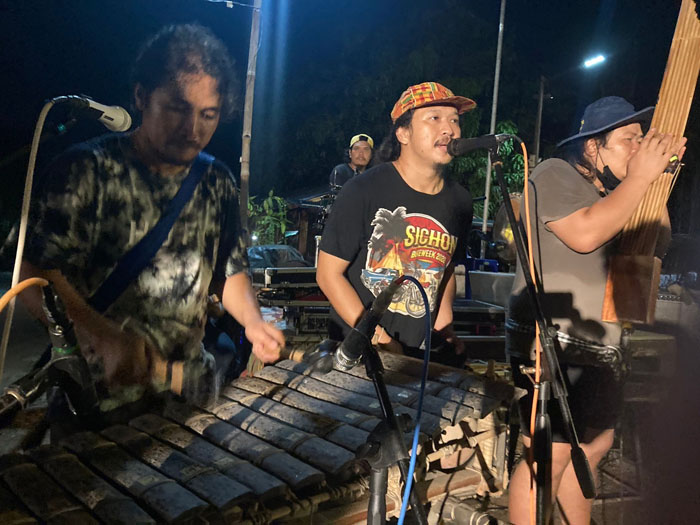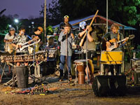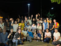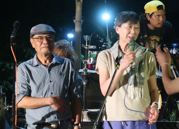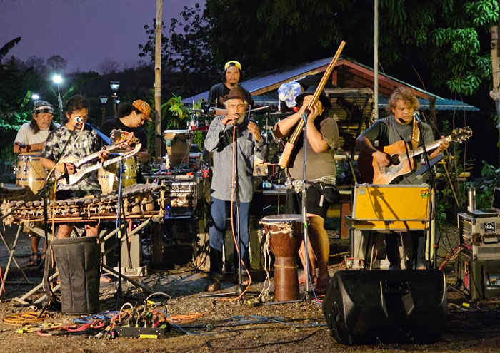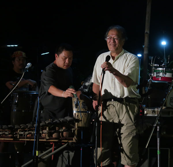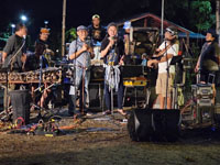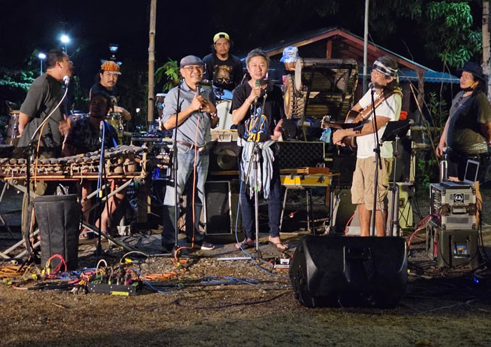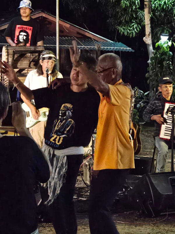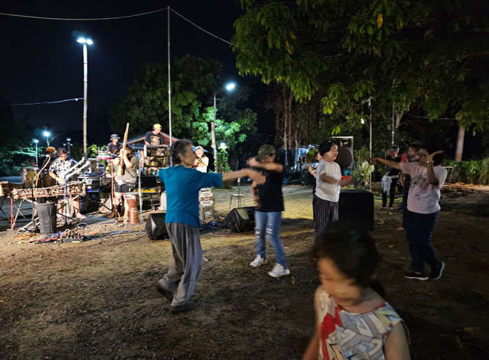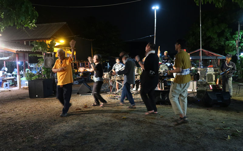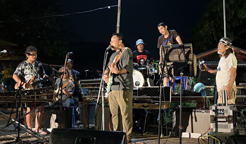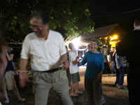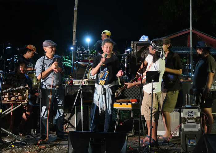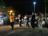 菅野さん♪、レインポーブラン♪の歌詞も入る歌の数々、船漕ぎの踊りも入り夜も更けていく。近所もないような場所、迷惑にもならない自由地帯。