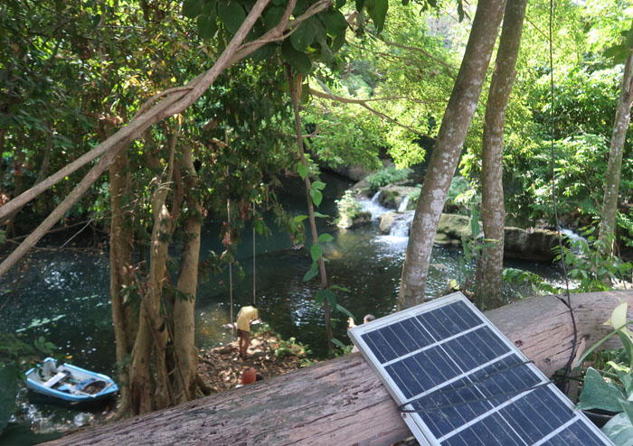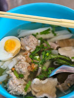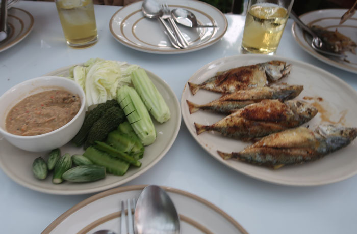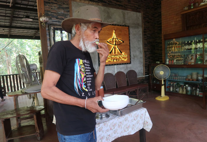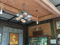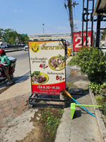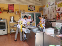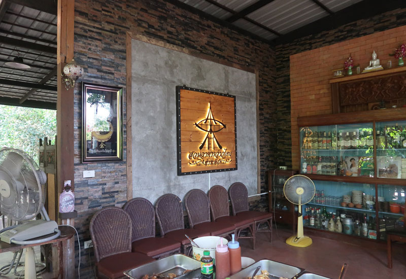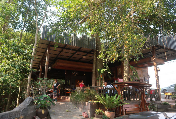 スースーバンドの好意によって、サネー・ウィチャイオン氏の妹が経営しているうカフェで馳走になる。サネー氏は元イーサンのNGOCODの委員長として緑の市場の創出に携わった人。 |