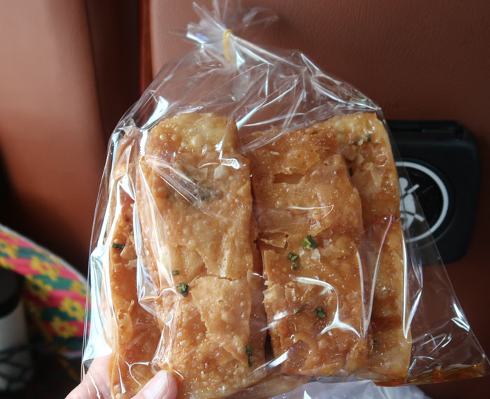 トイレ休憩時に購入のクレープ砂糖漬けお菓子35バーツ
