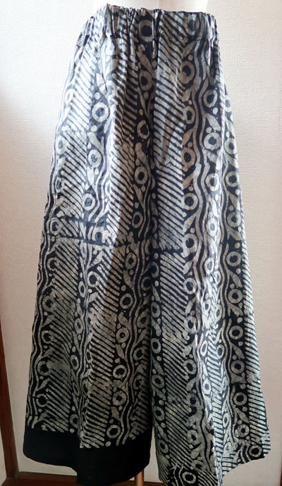 Mさんから頼まれたアンカラタモ布ワイドパンツ、青い薔薇 |