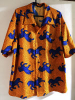 8月両国展示会で仕入れたオレンジ馬柄でアロハシャツ8/31完成