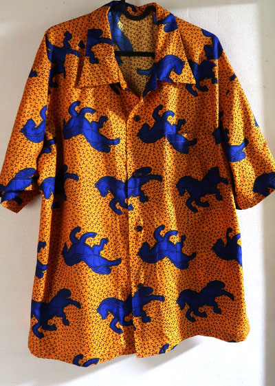 ナイジェリア布はこの頃5ヤード購入のためワンピースを縫った後の布でジャケット作り。同布のワンピースに合わせるとしつこくなるのでこれはこれでの着用。9/23完成。 |