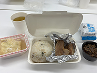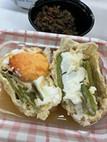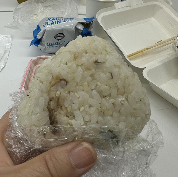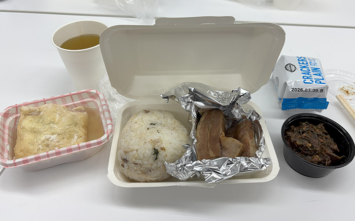 式根島のタカベ(白身の魚)、紫蘇、胡麻のおにぎり 薬膳豚角煮