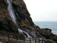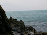滝を越え、進むと180度海の風景が広がりそう…。行ってみたい気もするがあきらめる。