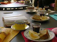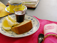 その後、リビングに場所を移し、デザートタイム。日向夏と、信子さんのブルーベリーゼリーとシフォンケーキで。