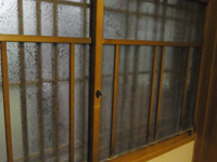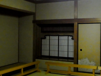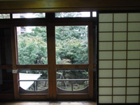 庭に面した部屋。本日雨のため雨戸が閉められています。ガラス戸がなく、障子戸です。