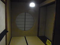 茶室横の円窓の部屋、そこから内土蔵の入り口が見えます。 |