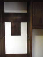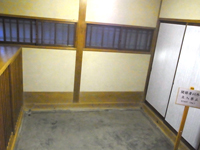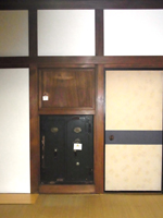 内玄関横の事務室。金庫や、以前電話が置かれていたスペース。 |