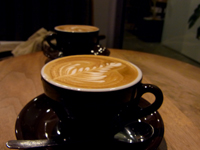 自家焙煎、鳥取の牛乳使用。カプチーノがおいしい。450円。 |