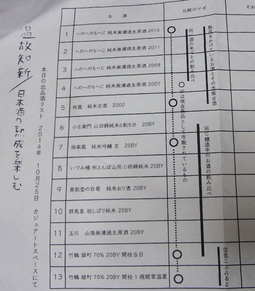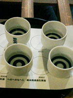 利き酒の会ということで、へのへのもへじ2007、2009、2011、2013年を味わう。 |