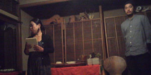 カジュアートスペースへ。暗い中、はじめて行くので迷子になる。コンビニで訊ねると、「カジュアートスペース」で教えてくださる。でもわかりにくい場所。電話でも訊ね、なんとか近づき、あたふたして、歩く人に訊ねると、その人たちもそこに行くという。後ろについていき、無事たどり着きました。