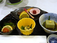 先付、蟹味噌豆腐、鰤照り焼き、海の幸など