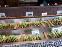 団体バスがやってくる観光スポットですが、中身はよかった。わさび菜のおやきもおいしい。わさびビール、わさびソフト、冷たそう。夏には売れるでしょう。