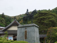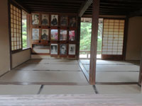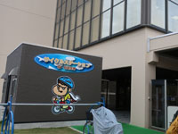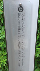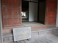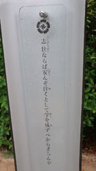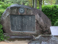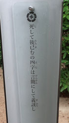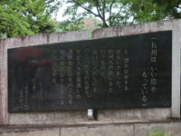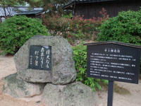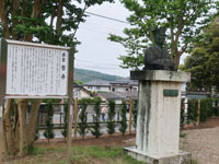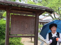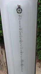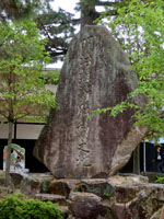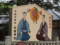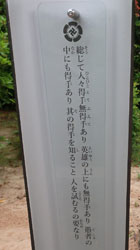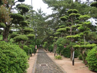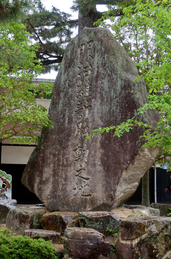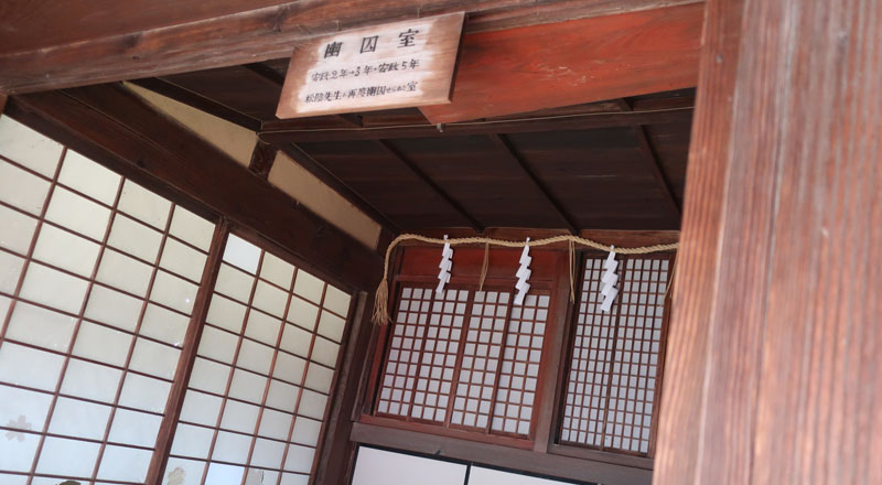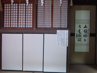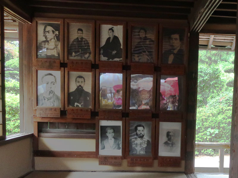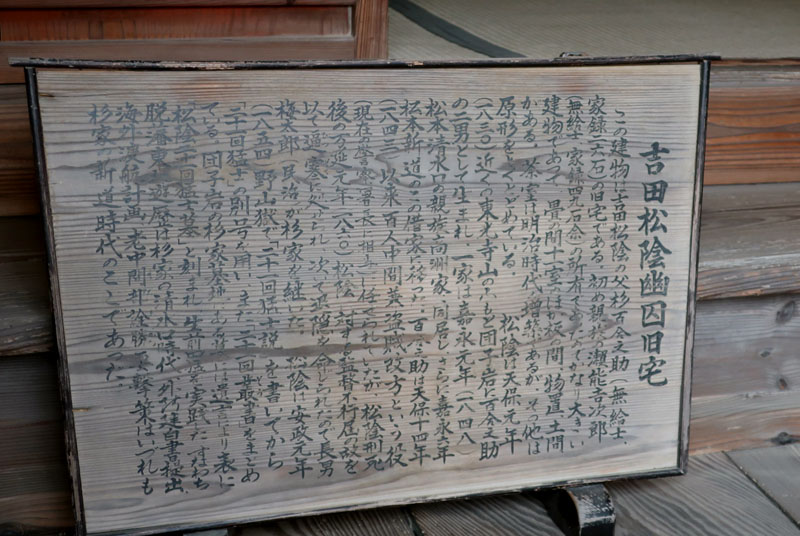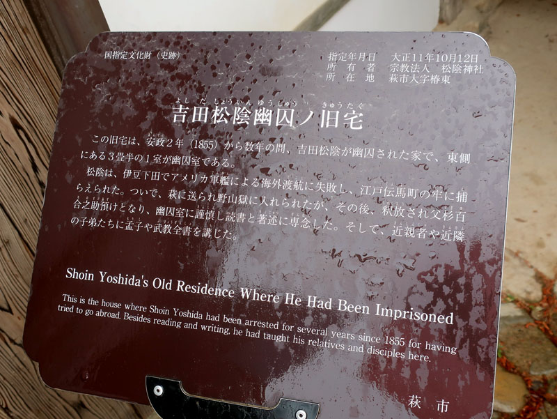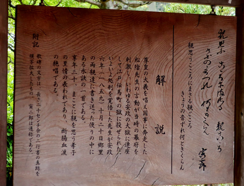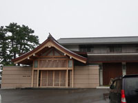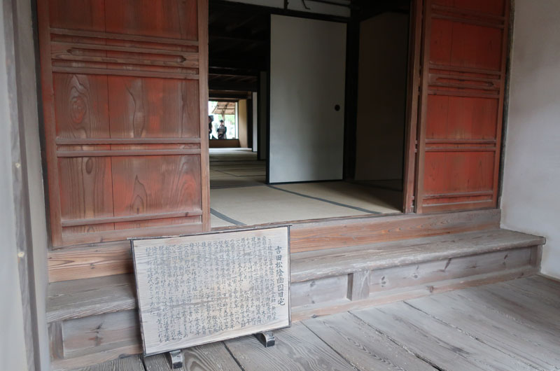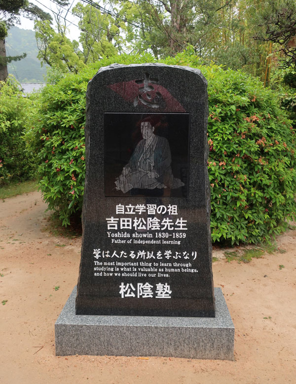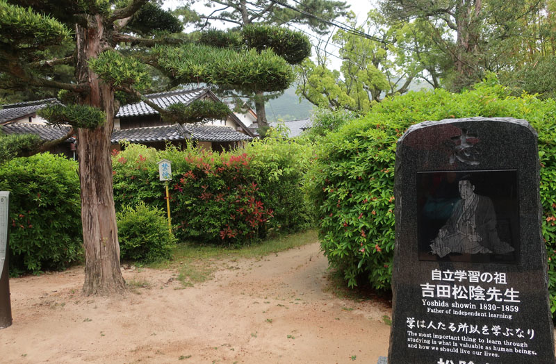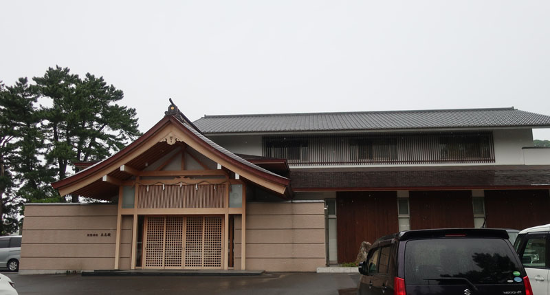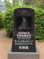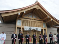 松陰神社境内に入ると立志殿 この研修施設「立志殿」は2016年10月27日の例大祭に合わせて披露され、関係者らがテープカットして完成を祝った。また、舞楽も奉納された。 立志殿は老朽化した記念館跡に建設された。鉄筋コンクリート2階建てで延べ床面積は約760平方メートル。1階は約90畳の大広間「参集殿」、2階は会議室や事務室などがある。総事業費は約3億3000万円。回転すしチェーン店を展開する「銚子丸」(千葉市)の創業者、堀地速男さんの寄付によるもの(テープカットの画像はネットから)