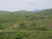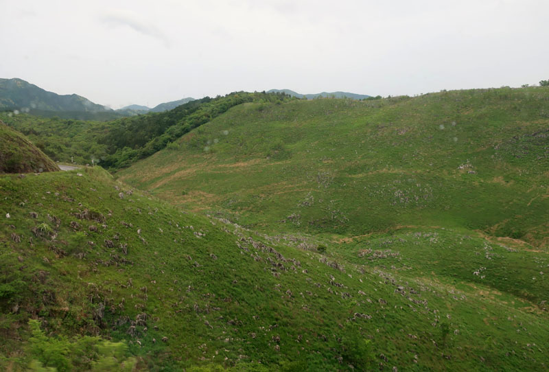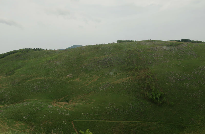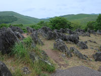 C長年の雨水と地下水で浸食され、凹凸地形のカルスト台地を形成する
