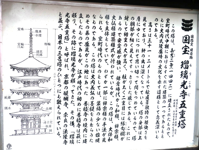 香山公園は瑠璃光寺の周辺一帯を整備した緑豊かな公園で、国宝に指定された壮麗な瑠璃光寺五重塔のほか、毛利敬親が倒幕の作を練った露山堂、薩長連