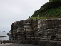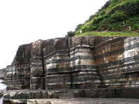 B堆積した石灰岩が地殻変動によって大陸プレートにぶつかり、隆起する