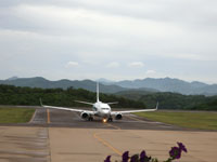 海そばの空港なので離陸時に海と陸地が見える