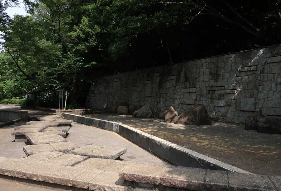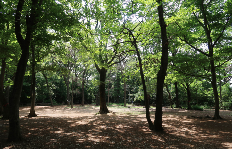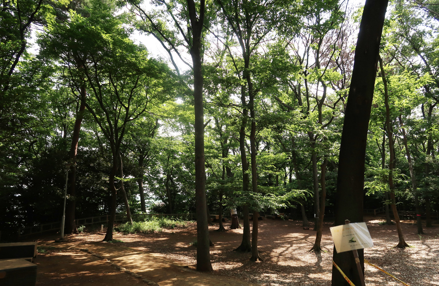 狭めの駐車場はコロナ渦で閉じられている。急ぎ駐車場横に止め、公園内を見る。