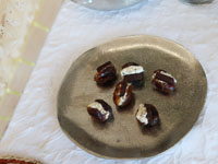 | 円錐網の中、お菓子はデーツの中にクリームチーズとチョコ |