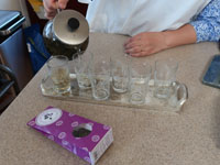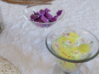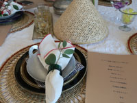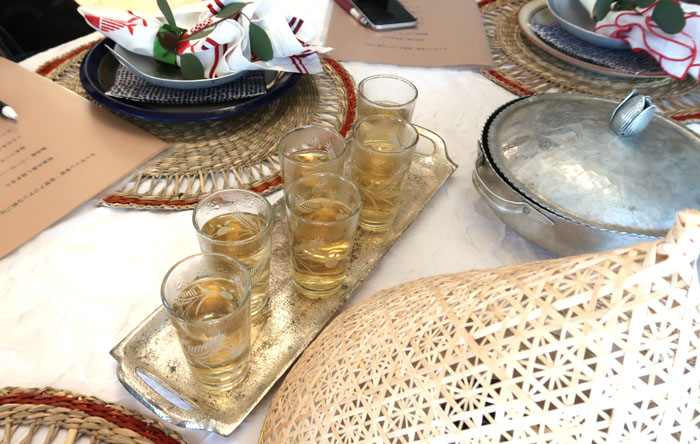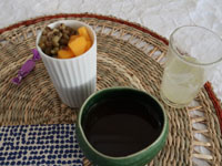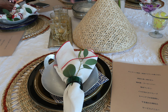 11月に入ったものの、なんとなく暑い日々の中キャサリン食堂へ、今回は妄想アジアンな朝ごはんレッスンへ。ウェルカムドリンクはウーロンヴィオレットティ。息子様のフランスみやげ。 |