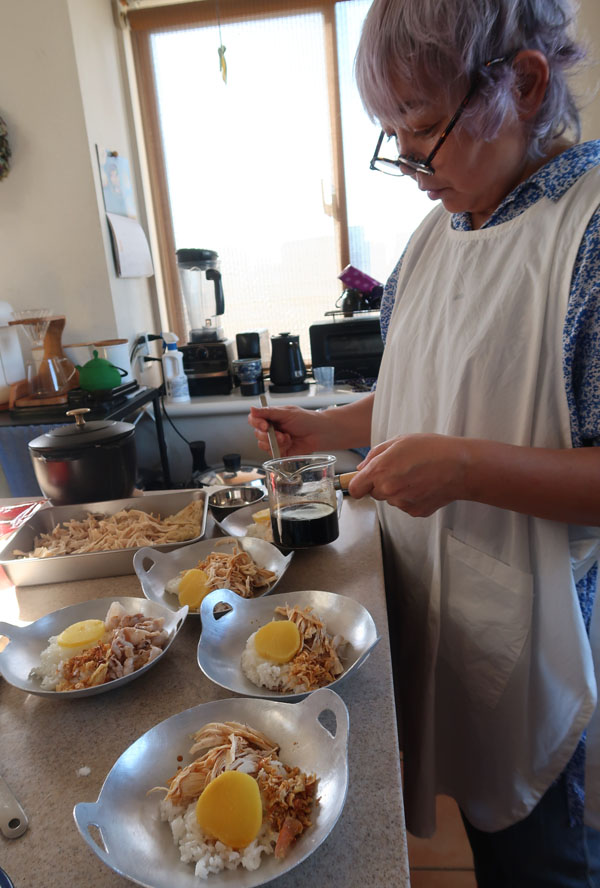 鶏肉飯盛り付け |