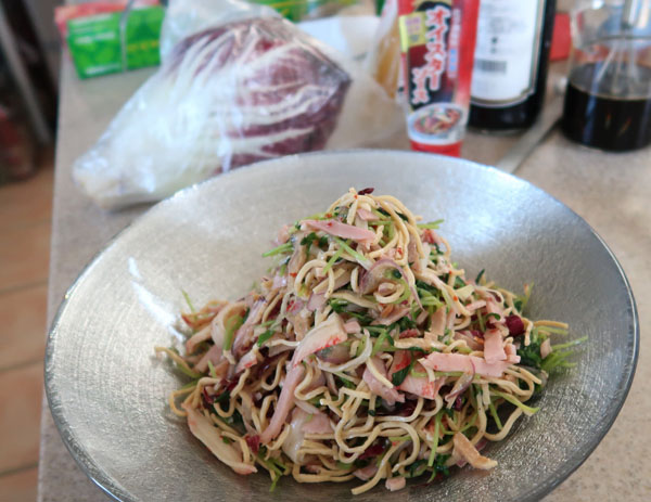 豆苗、カニカマ、トレビス千切り |