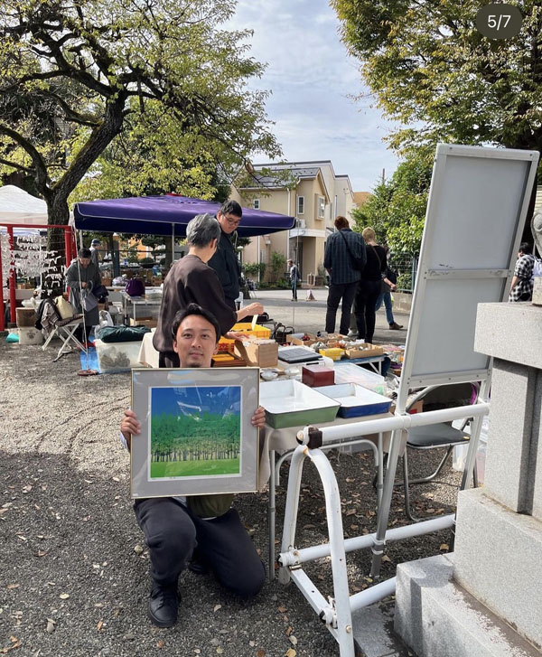 気付くと写真を撮られていた。撮影者は右画像の骨董市運営者の方田森さんというらしい。 |