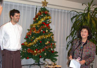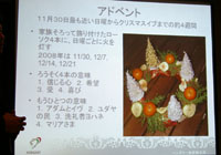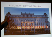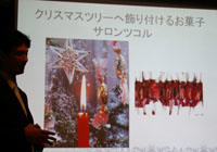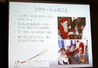 最後に渡辺さんからご挨拶。クリスマスムードたっぷり、和やかな会でした。ホットワインに酔い、おいしいスイーツに大満足。感謝。 中欧(数年前までは東欧と呼ばれていました。)の美しい街並みが残るハンガリー、ユーロ導入の前に行ってみたいところです。世界遺産は文化遺産が多く、魅力的です。