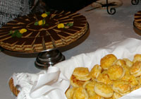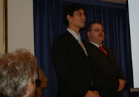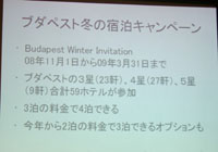 ←観光局長、さりげなく、キャンペーンの告知。 →事務局長のMr.Tibor SZENDREI氏がお茶会の料理説明を英語、ハンガリー語で。コーシャさんが通訳。その後代理大使Mr. BOZSIK Bela氏が、急に外務省に呼ばれて遅れてしまったと詫びつつご挨拶、前駐ハンガリー大使稲川照芳氏も登場される。
