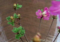 えびの高原へ。ミヤマキリシマはまだ開花していない?これはレストハウスの中のミヤマキリシマ。