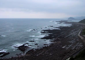 宮崎、青島の先の堀切峠崎にはこんな海岸線が広がっています。洗濯板のようです。青島には「鬼の洗濯板」という名所があるそうですが、有料駐車場に停めてしばらく歩かなければならないので断念しました。