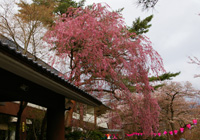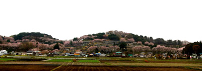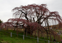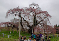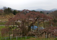 「三春滝桜は福島県田村郡三春町大字滝字桜久保に所在する。三春超を含む旧田村郡一帯は、枝垂れのエドヒガンの植栽が多く見られ、地域の風景の特徴のひとつともなっているが、三春滝桜のように巨大なものはない。三春滝桜はネモトの周囲10.5m、目通り幹周り9.5m、枝の広がり東西約22m、南北約17m、枝垂下して地表近くに及び、その花濃紅艶美であり紅枝垂と呼ばれる。