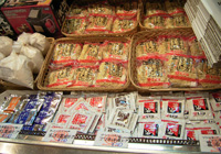 ラーメン館にて。会津はお酒も有名なようで、お土産物やさんでは利き酒をさせてくださいます。瓶がとてもおしゃれ。お土産物のメインはもちろん喜多方ラーメン。製造行程がガラス越しに見られます。ちぢれ麺が完成していって、ビニール袋に1袋ずつ梱包されていきます。麺はまるでスパゲッティのようです。