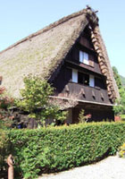 中央高速道から、紅葉の名所、中山七里を眺めつつ、下呂温泉(日本の三大温泉の一つです。)の合掌の里へ。ここには白川郷から移築された10棟の合掌民家があります。写真は旧大豆戸家住宅(重要文化財)です。