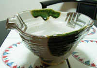 下呂温泉合掌の里で買った美濃焼きです。右の織部には冷酒を注ぐ?