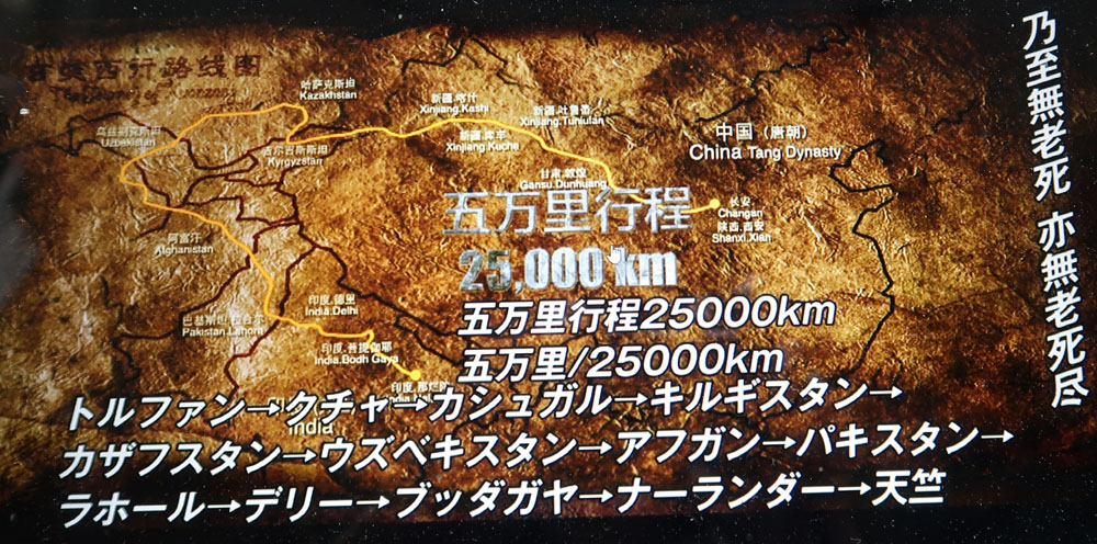 孫悟空で出てくる三蔵法師の真実。困難な旅をしてインドに渡る。遠回り。日本の僧侶も中国に渡って仏教を伝えてきて、海を渡るのも大変だったろうが、これまた想像を絶する旅。ウズベキスタンも経由している。 |