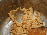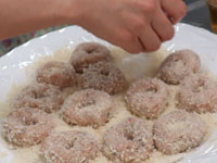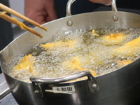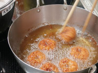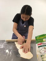 バナナバンズ整形、揚げ手伝った