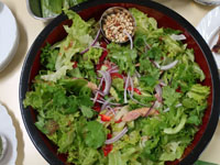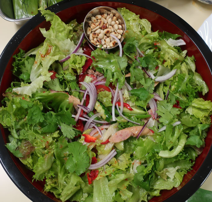 ソーセージスパイシーサラダ、レタスちぎるの手伝った!