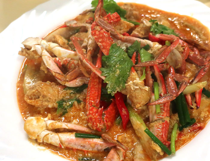 【ピーセツコタイ食堂】プーパッポンカレー/ソーセージスパイシーサラダ/エビのさつま揚げ(梅のスイートソース)