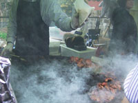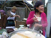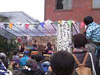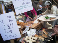 仁勇敷地内、大きな休憩所があり、その周りは、成田ゆめ牧場や居酒屋集団の屋台が並ぶ。道路を渡ると、酒饅頭。お酒の香りせず。その奥では酒粕の詰め放題(300円)をしている。たくさん詰めると重たそうだし、追加の酒粕が運ばれてきて、産業廃棄物のように見えてくる。お店の人かと思ったら、普通のお客さんだったりして、このあたり酩酊状態。