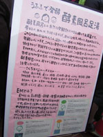 やっと「寺田本家」試飲タイムです。むすひ(発芽玄米酒)、醍醐のしずく(どぶろく仕込み)、五人娘、、自然のまんま、花ゆららをいただく。どれもおいしい。この時期しか飲めないものもあり貴重です。あっという間に試飲が終わってしまう。むすひもよいけれど、醍醐のしずく(甘めなので食前酒に、という説明に納得。もちろん食事をしながらでも。)は、定番、お勧めです。