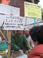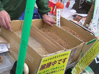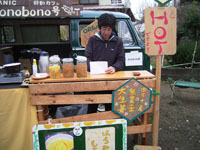 次に寺田本家近く屋台スペースに。トージバの売店です。神澤奥さん、夏ぶり。豆マッシュ、ニンジンマッシュの話、試食をし、豆を買います。このエリアは千葉、茨城、鎌倉などからのオーガニック系お店からの出店が多いです。