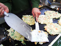 チヂミを神崎神社あずまやでいただきます。大混雑の中の移動はたいへん。お弁当箱に入れていると、こぼれず、保温もされています。マイ皿持参の時、お弁当箱は便利です。深さもあるしね。